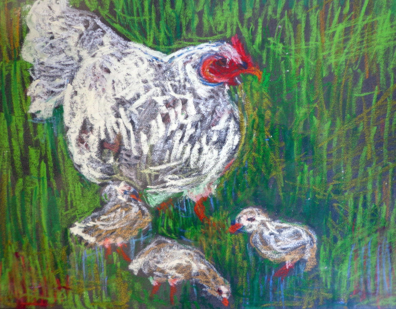 huehner familienleben 23x25 oel pastell
