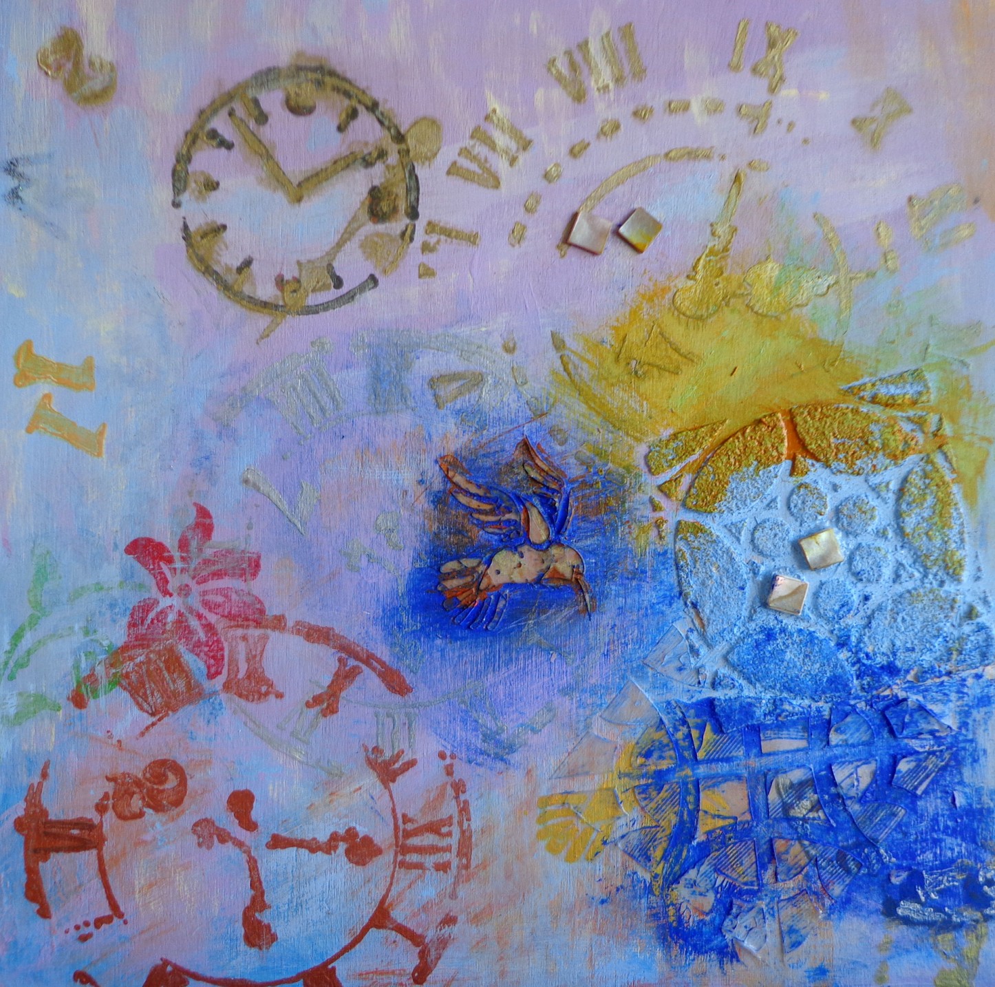 lebenszeit 30x30 mischtechnik auf holz